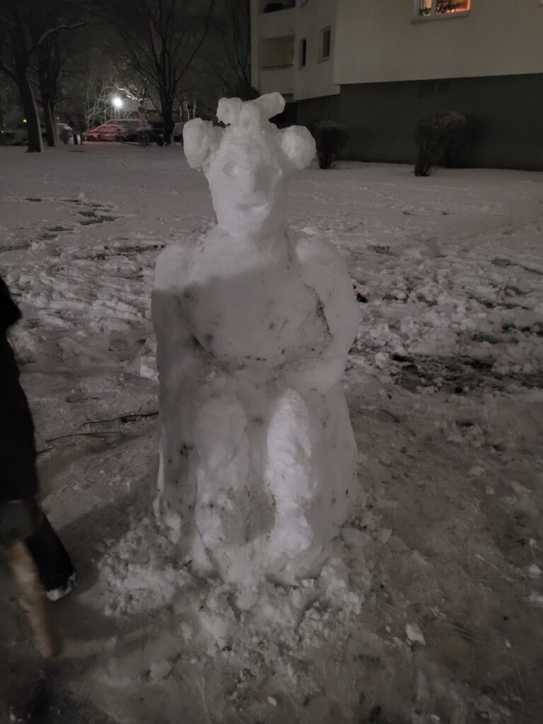 Bei meinem Rundgang durchs Viertel zeigte sich der Schnee in vielen kleinen Szenen. Schneemänner standen auf Grünflächen, vor Häusern, an Wegrändern. Manche sorgfältig gebaut, andere schlicht zusammengeformt. Einige hielten nicht lange. Auch das gehört dazu. Unterschiedliche Menschen gehen unterschiedlich mit dem Schnee um.