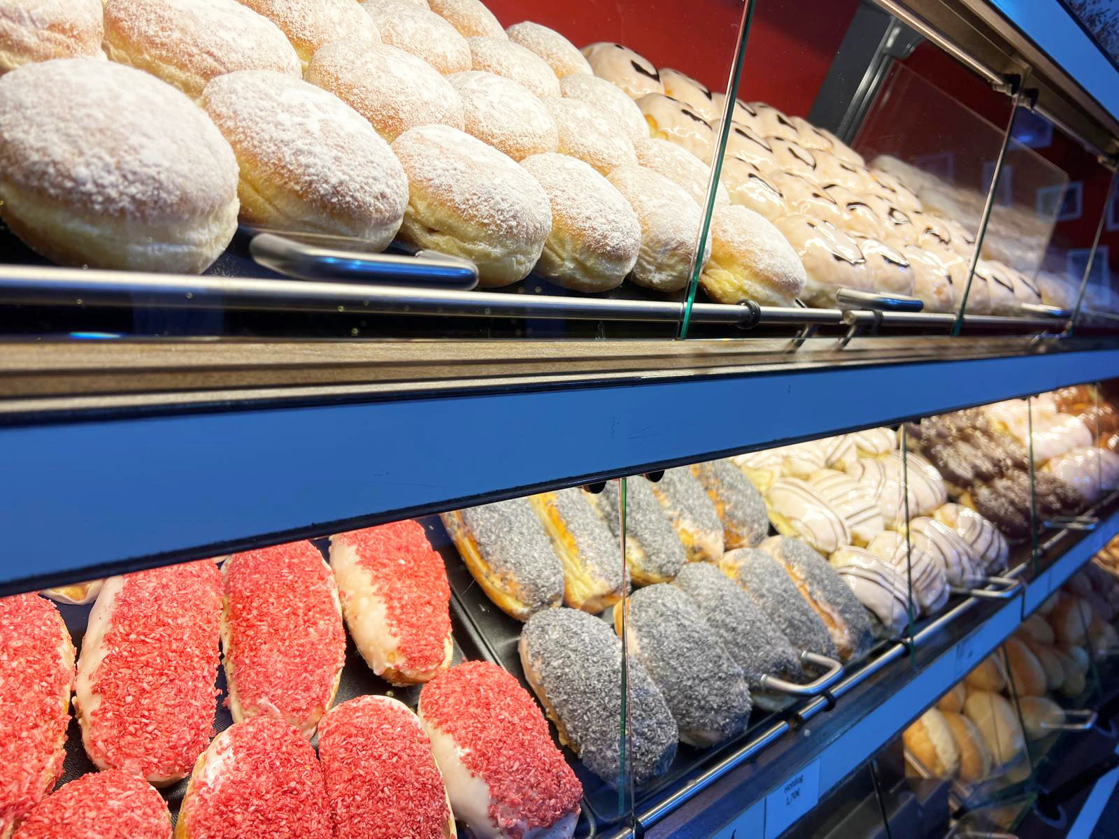 Kurz-Überblick der Preisspanne: Brötchen/Schrippen 0,20,- Donuts 0,90,- Berliner 1,- und belegte Schrippen/Brötchen zwischen 1,70-2,70,-
