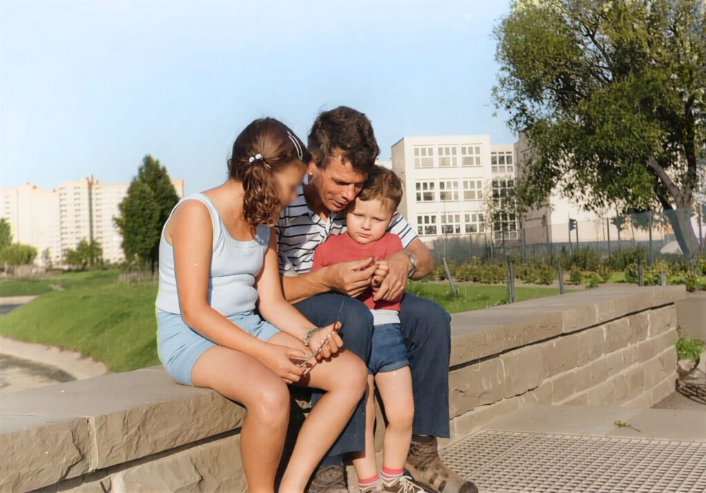 Dieses historische Foto wurde uns von Anika Ani Ruthe zugesandt und zeigt sie selbst als Kind im Jahr 1983, in der Mitte, flankiert von ihrem Bruder und ihrer leider mittlerweile verstorbenen Mutter. Die Aufnahme entstand in der Wittenauer Straße 7, am Rand des Märkischen Viertels. Besonders war dort, dass viele nicht durch den offiziellen Eingang gingen, sondern lieber den rückseitigen Zugang nutzten, vorbei an den Müllplätzen, den Kellern und dem großen Parkplatz. Im Inneren des Hauses gab es zwei Fahrstühle, an die sich Anika bis heute erinnert. Das Bild wurde von uns digital restauriert: Kratzer und Fehler entfernt, Farben aufgefrischt, hochskaliert und detailreicher wiederhergestellt.