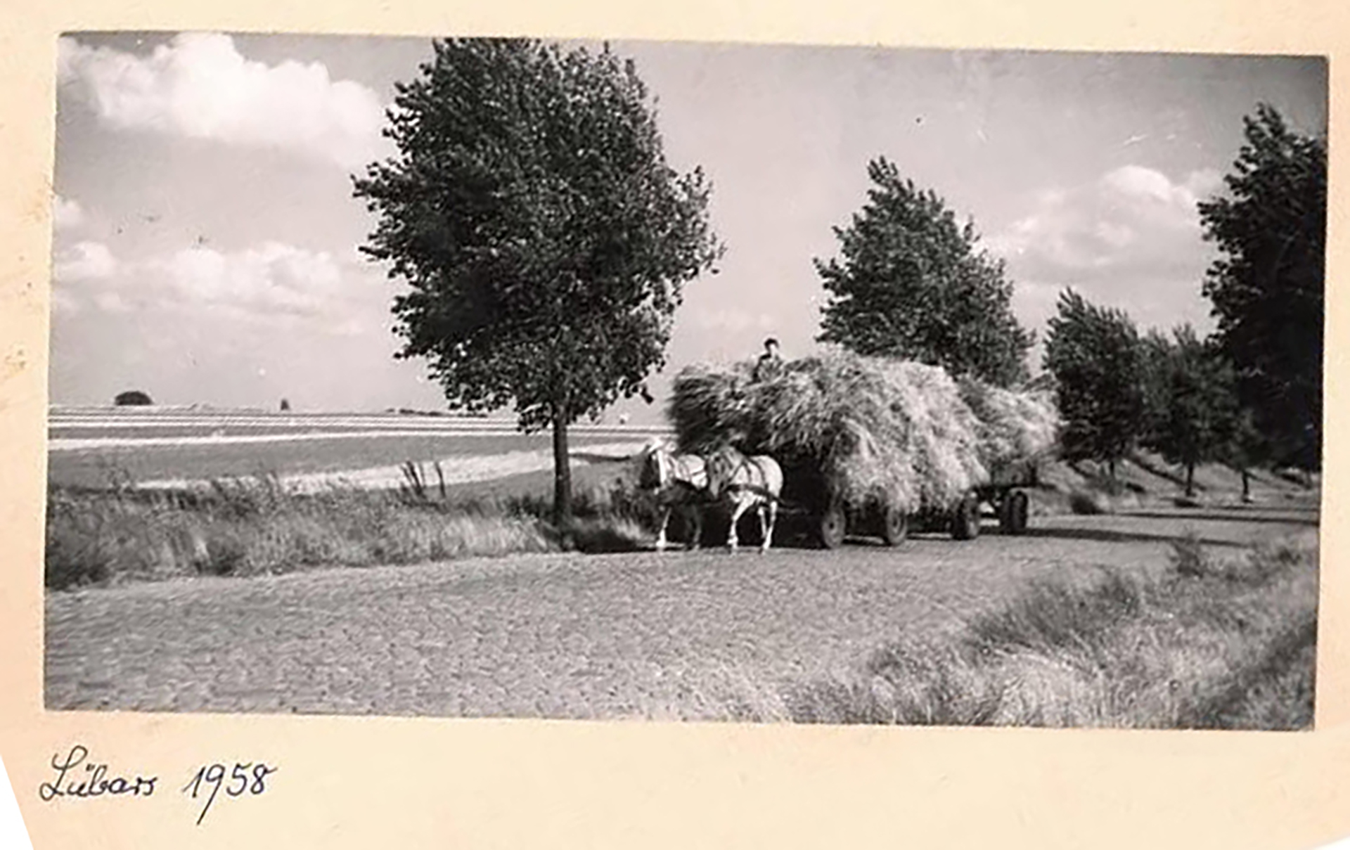 Stefan Le Breton hat uns diesen besonderen Schatz aus dem Familienalbum geschickt. Aufgenommen wurde das Bild im Jahr 1958 in der Quickborner Straße, zu einer Zeit, in der Heuwagen über die Straßen rollten.