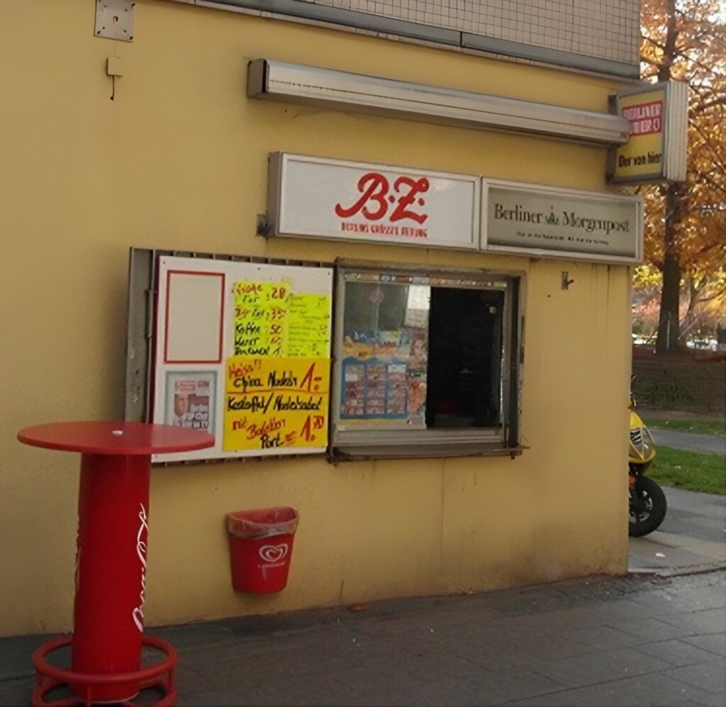 Dieses Foto ist nicht alt im klassischen Sinn und trotzdem zeigt es etwas, das aus dem Märkischen Viertel fast verschwunden ist. Einen Kiosk, an dem man nicht hineinging, sondern draußen stand und durchs Fenster einkaufte. Kurz anhalten, bestellen, warten, weitergehen. Für viele gehörte das ganz selbstverständlich zum Alltag.