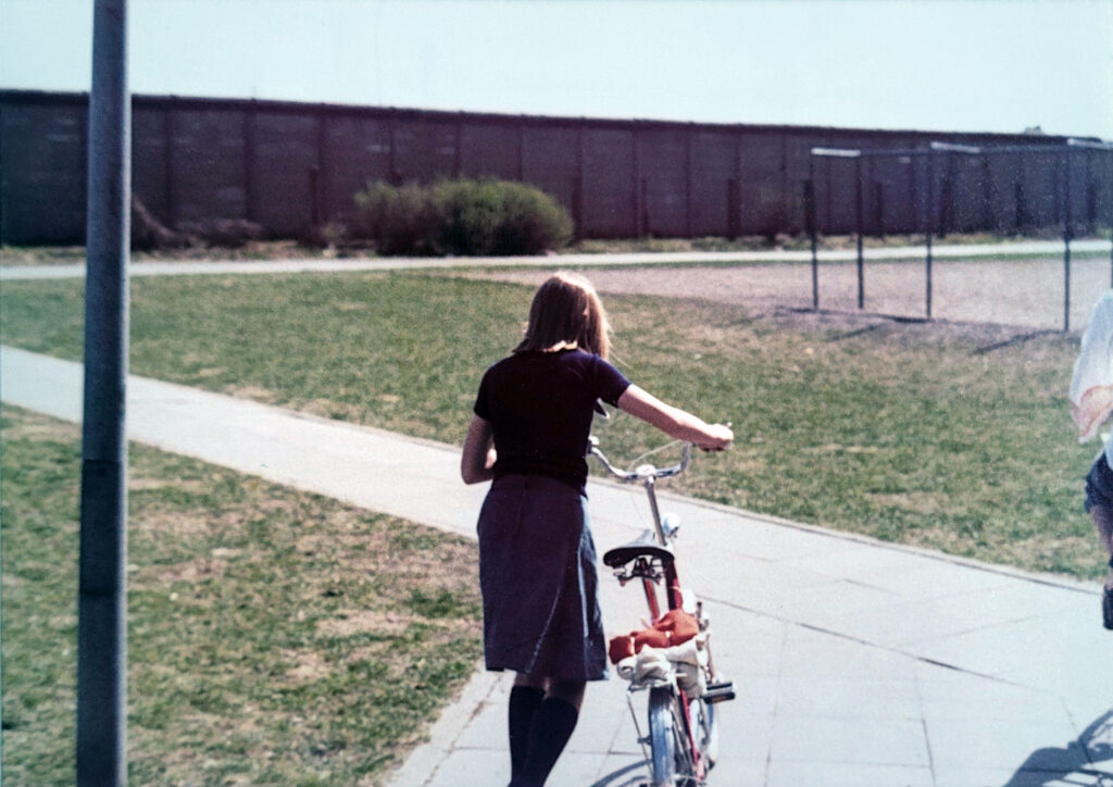 Der Weg, auf dem die Person mit dem Fahrrad steht, wirft Fragen auf. Er scheint zeitweise nicht existiert zu haben und wurde erst später wieder angelegt. Die Querung in Richtung der damaligen Mauer passt jedoch zu einer Wegeführung, die es an dieser Stelle über lange Zeit gab und heute noch gibt. Genau diese Übereinstimmung spricht für den vermuteten Standort, ohne ihn abschließend belegen zu können.