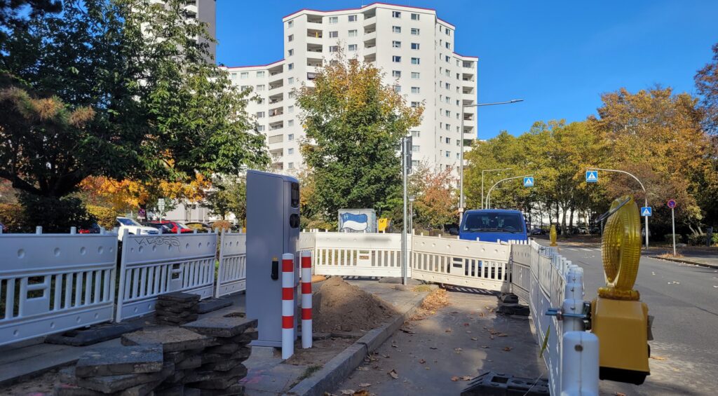 Elektromobilität zieht sichtbar ins Märkische Viertel ein. Überall im Quartier entstehen derzeit neue Ladesäulen, fast zeitgleich an mehreren Orten. Bereits in den vergangenen Monaten berichteten wir über die Standorte in der Tiefenseer Straße und am Senftenberger Ring Ost, wo Ladepunkte entlang der Straße installiert wurden.