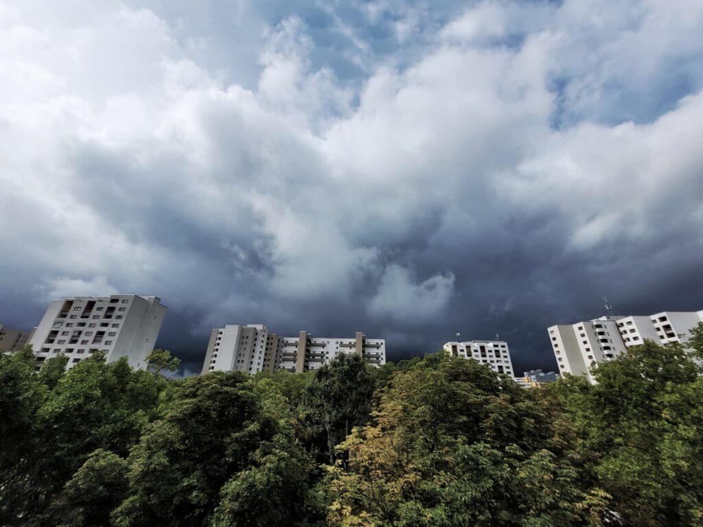 #MärkischesViertel #KiezImVisier #SenftenbergerRing #MV2025 #KiezMomente5.9.2025 – 12:59 Uhr – Über dem Märkischen Viertel ziehen dunkle Wolken auf. Dieses Foto vom Wilhelmsruher Damm und ein Blick ins Wetterradar lassen vermuten: In ein paar Minuten könnte es bei uns regnen.Der Eingang zum Märkischen Zentrum, viele kennen ihn, viele gehen täglich darunter hindurch. Über dem Haupteingang leuchtet noch immer das grüne Logo, das für viele längst zum vertrauten Bild gehört.