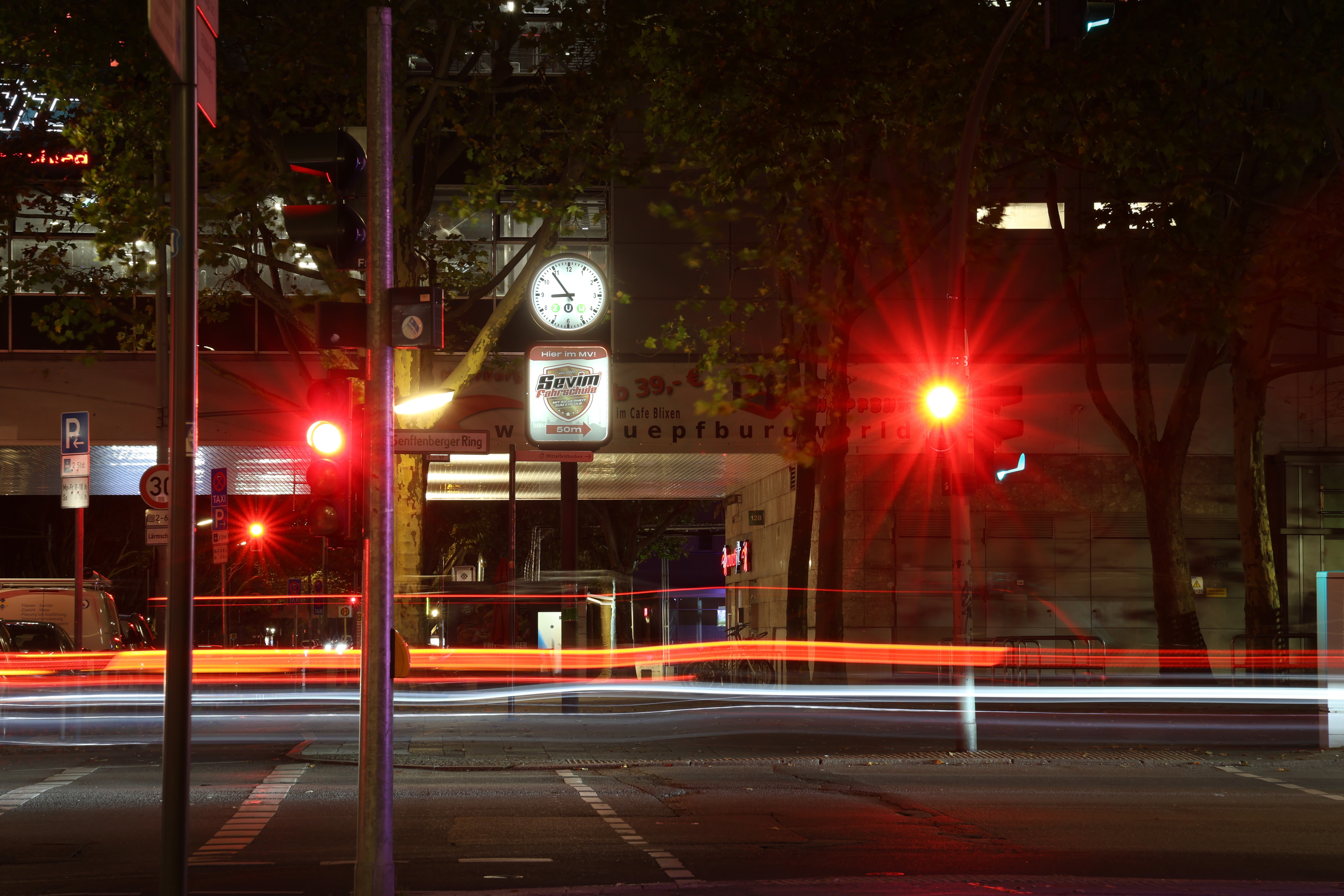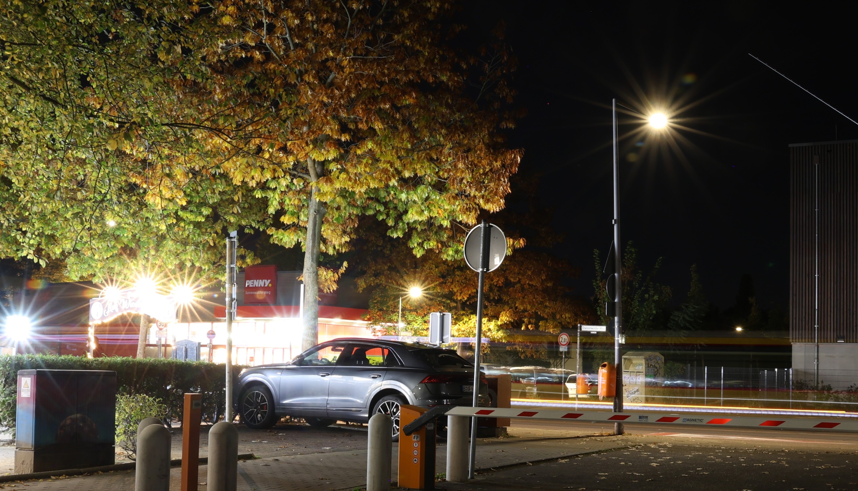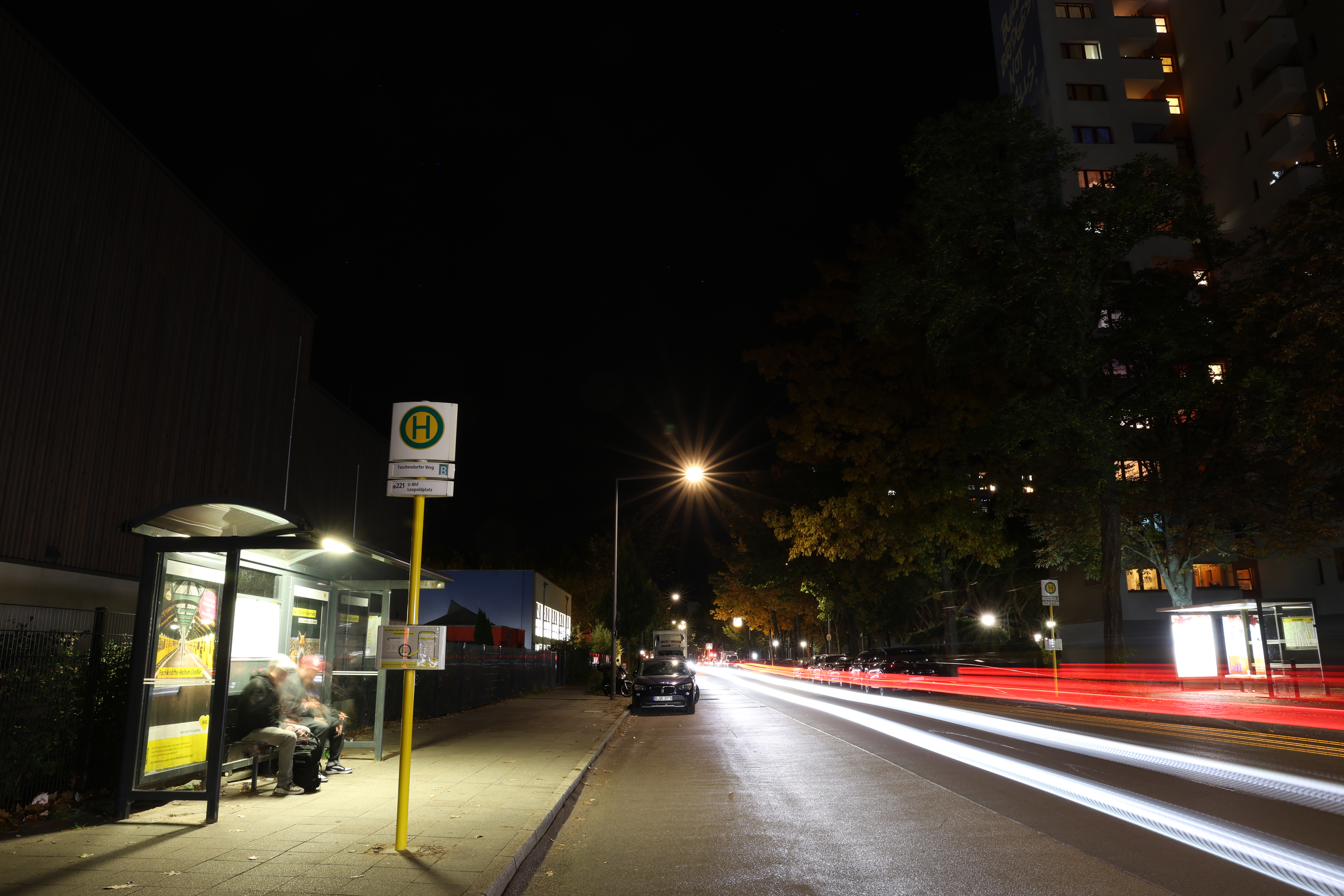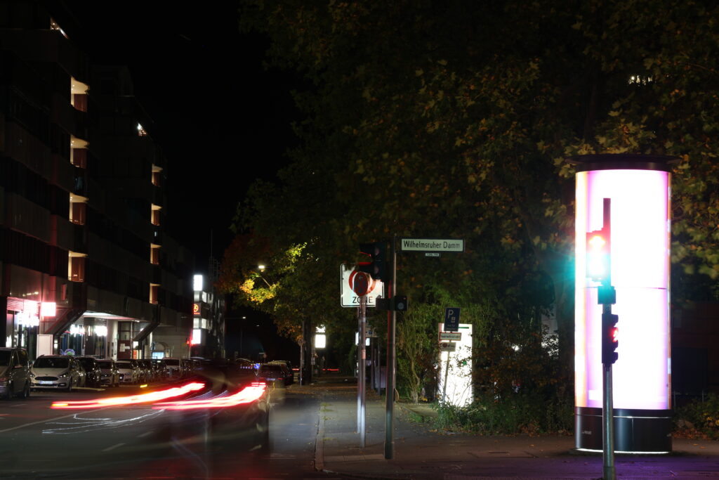 Und vielleicht wecken die Fotos gleichzeitig ein kleines Gefühl von Winter, der Gedanke daran, dass die kalte Zeit nicht nur Risiken bringt, sondern auch Stille, klare Luft und diese besonderen Landschaftsfarben.Auf dem Gelände des Kinder-, Jugend- und Familienzentrums comX am Senftenberger Ring zeigt dieses Sommerfoto den kleinen Basketballbereich, eingefasst vom Grün der Anlage und vom Alltag des Viertels. Die Aufnahme stammt von Viertelreporter Kiez im Visier und trägt den Blick auf einen Ort, an dem Bewegung, Begegnung und ein bisschen Leichtigkeit zusammenkommen.Dannwalder Weg am Abend Dieses Foto haben wir vor ein paar Wochen am Dannwalder Weg aufgenommen, mit Blick in Richtung Wilhelmsruher Damm. Die Bushaltestelle links wirkt fast wie ein kleines Lichtfenster im Dunkel, während sich rechts die langen weißen und roten Linien des Verkehrs abzeichnen. Durch die Langzeitbelichtung wird die Bewegung sichtbar, die uns sonst entgeht.Wir bedanken uns bei Anna für die liebe Kurznachricht, die uns am Morgen des 12. November 2025 erreicht hat: