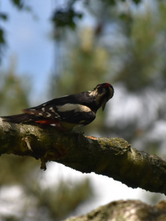 Zum anderen ist ein Buntspecht zu sehen. Er ist kontrastreicher gefärbt, mit schwarzen, weißen und roten Partien, und deutlich stärker an Bäume gebunden. Buntspechte sind typische Klopfer. Sie suchen Insekten unter der Rinde, hacken Höhlen und nutzen alte Bäume oder dicke Äste als Lebensraum. Ihre Trommelgeräusche sind im Frühjahr oft weithin zu hören.