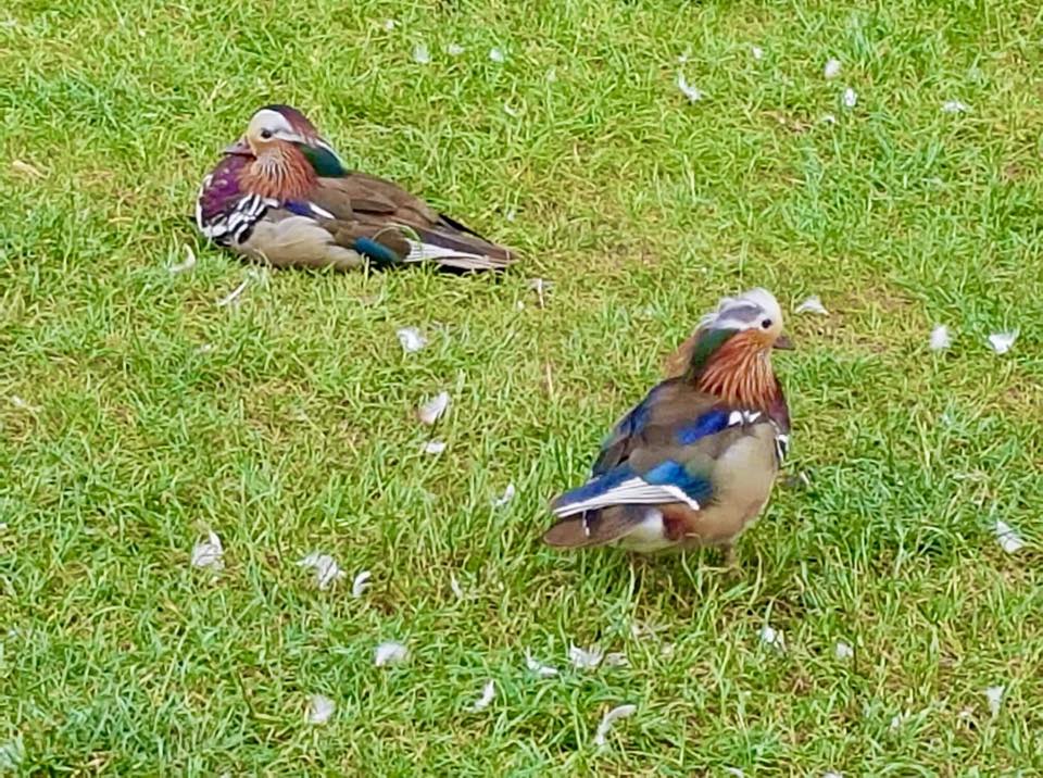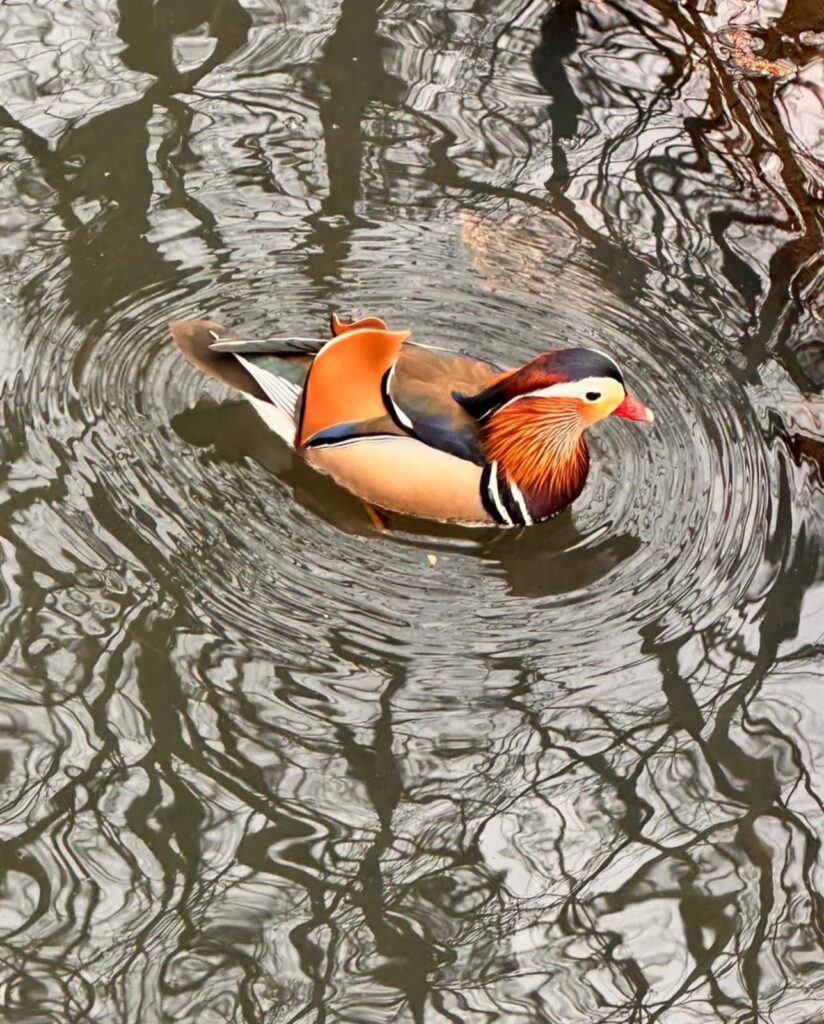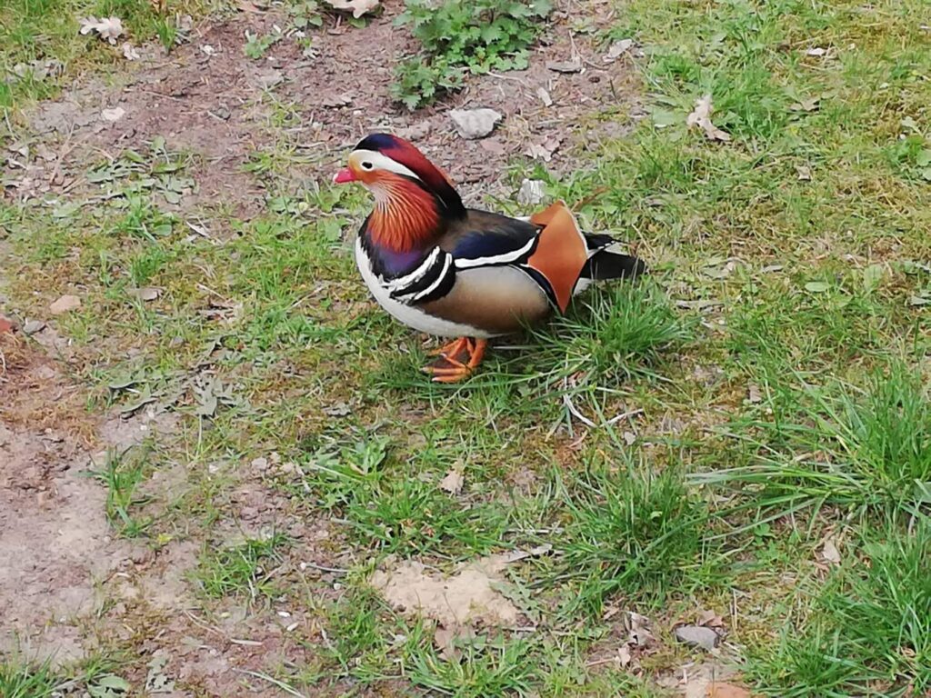 Die Mandarinente gehört zu den auffälligsten Entenarten, die man hier beobachten kann. Besonders die Männchen fallen mit ihrem leuchtenden Gefieder sofort ins Auge: kräftiges Orange, Grün, Blau und Weiß bilden ein fast exotisches Farbenspiel. Die Weibchen sind deutlich schlichter gefärbt, überwiegend braun-grau mit hellem Augenring, zurückhaltend, aber elegant.