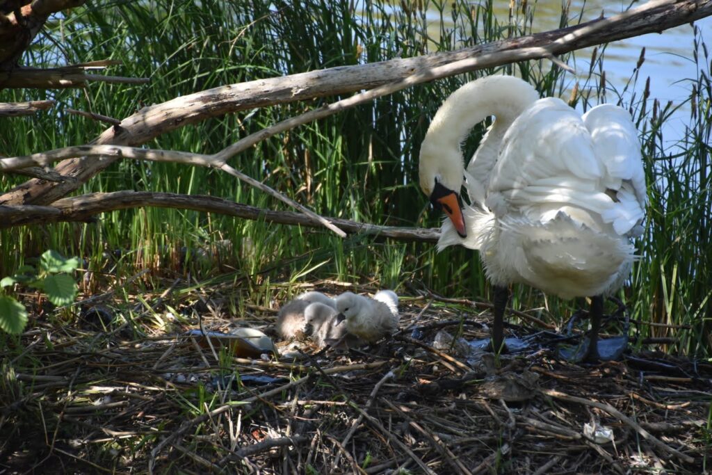 Auf den Bildern sind sowohl ausgewachsene Höckerschwäne als auch Jungtiere zu sehen. Jungschwäne tragen zunächst ein graues Gefieder und wirken deutlich zierlicher. Erst im Laufe der Monate färbt sich ihr Gefieder langsam weiß. Diese Entwicklungsphase macht gut sichtbar, dass Schwäne nicht von Anfang an das typische Erscheinungsbild haben, das viele mit ihnen verbinden.
