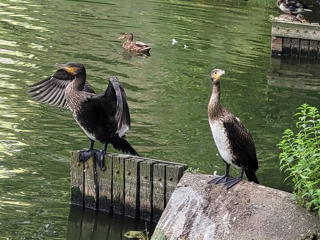 Im Zusammenspiel mit Enten, Möwen und anderen Wasservögeln sind Kormorane ein fester Teil des Lebens hier. Ihr Auftreten wirkt manchmal dominant, gehört aber zu einem natürlichen Nebeneinander verschiedener Arten, die denselben Raum nutzen.