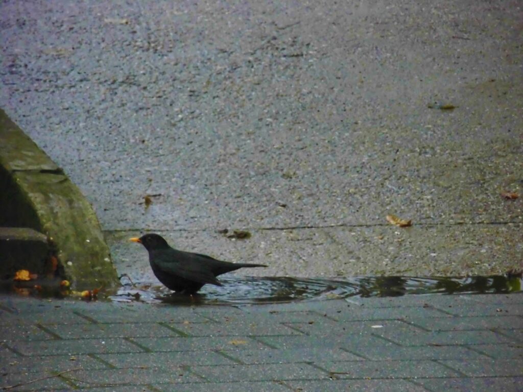 Die Aufnahme zeigt Tauben beim Baden in einer Pfütze. Sie stehen dicht beieinander, putzen ihr Gefieder, warten aufeinander. Das Bild widerspricht vielen gängigen Vorurteilen. Tauben suchen Sauberkeit. Sie pflegen sich regelmäßig und nutzen jede Möglichkeit, Wasser zu finden. Dass sie dafür oft Pfützen nutzen müssen, sagt mehr über ihre Lebensumstände als über die Tiere selbst.
