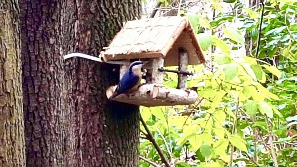 Der Kleiber erkennt man an seinem blaugrauen Rücken, der hellen Unterseite und dem markanten schwarzen Augenstreif. Anders als Spechte oder Meisen kann er Baumstämme nicht nur nach oben, sondern auch kopfüber hinabklettern. Dabei sucht er in der Rinde nach Insekten, Spinnen und Larven. Im Herbst und Winter frisst er zusätzlich Samen und Nüsse, die er oft geschickt in Rindenspalten einklemmt, um sie aufzuhacken.