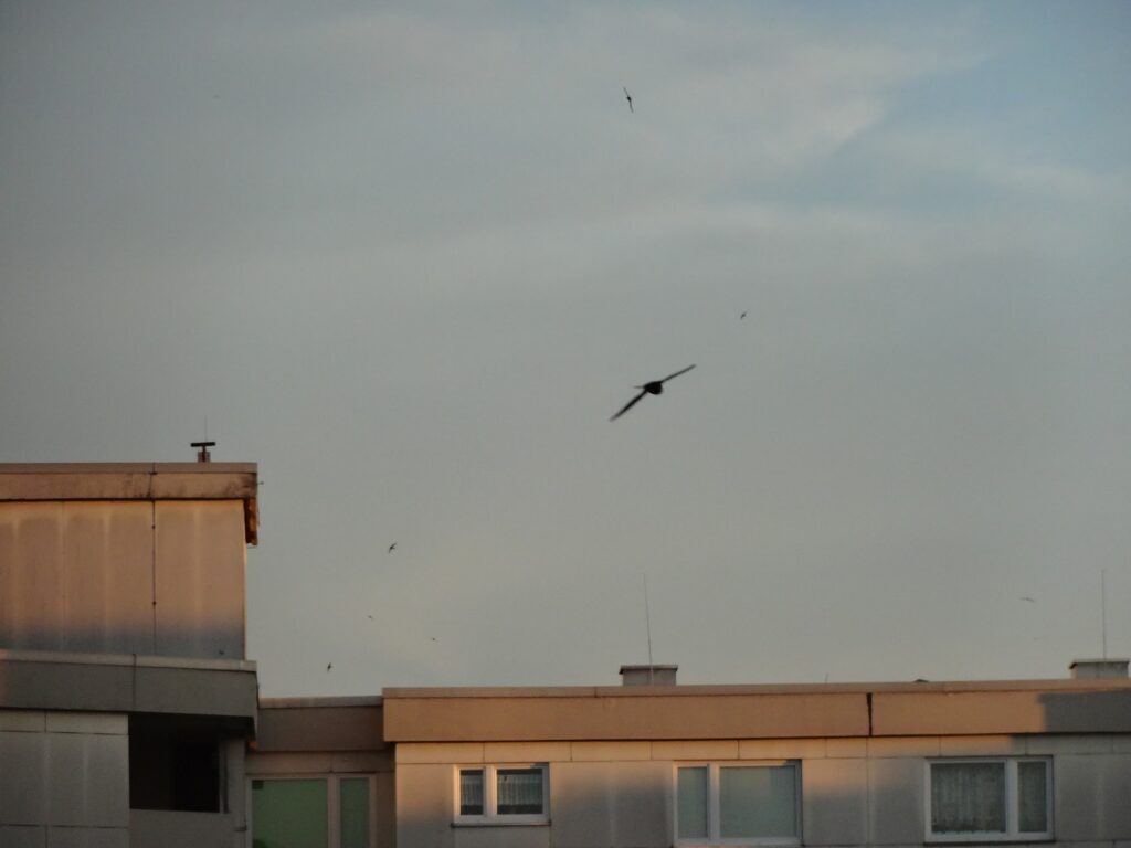 Kaum ein Vogel ist so eng mit dem Sommerhimmel verbunden wie der Mauersegler. Mit seinen sichelförmigen Flügeln und dem pfeilschnellen Flug zieht er hoch über den Häusern des Märkischen Viertels seine Kreise. Mauersegler verbringen fast ihr gesamtes Leben in der Luft: Sie jagen Insekten im Flug, sammeln Nistmaterial – etwa vom Wind hochgewehte Halme oder Federn – während des Fliegens und paaren sich sogar hoch oben. Nur zum Brüten kehren sie an Gebäude zurück. Typisch sind ihre schrillen „Sriii-Sriii“-Rufe, die man an warmen Abenden hört, wenn die sogenannten „Screaming Parties“ gemeinsam durch die Straßenschluchten jagen.
