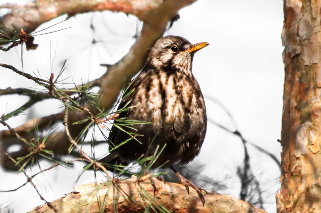 Auch Drosseln sind im Märkischen Viertel zu beobachten. Auf einem Leserfoto ist ein Tier zu sehen, das sich für uns nicht eindeutig einer Art zuordnen lässt. Die gefleckte Brust mit pfeilförmigen Zeichnungen erinnert an eine Singdrossel. Gleichzeitig wirkt der helle Bereich im Gesicht so, dass auch eine Rotdrossel, Misteldrossel oder weibliche Amsel in Frage kommen könnte.