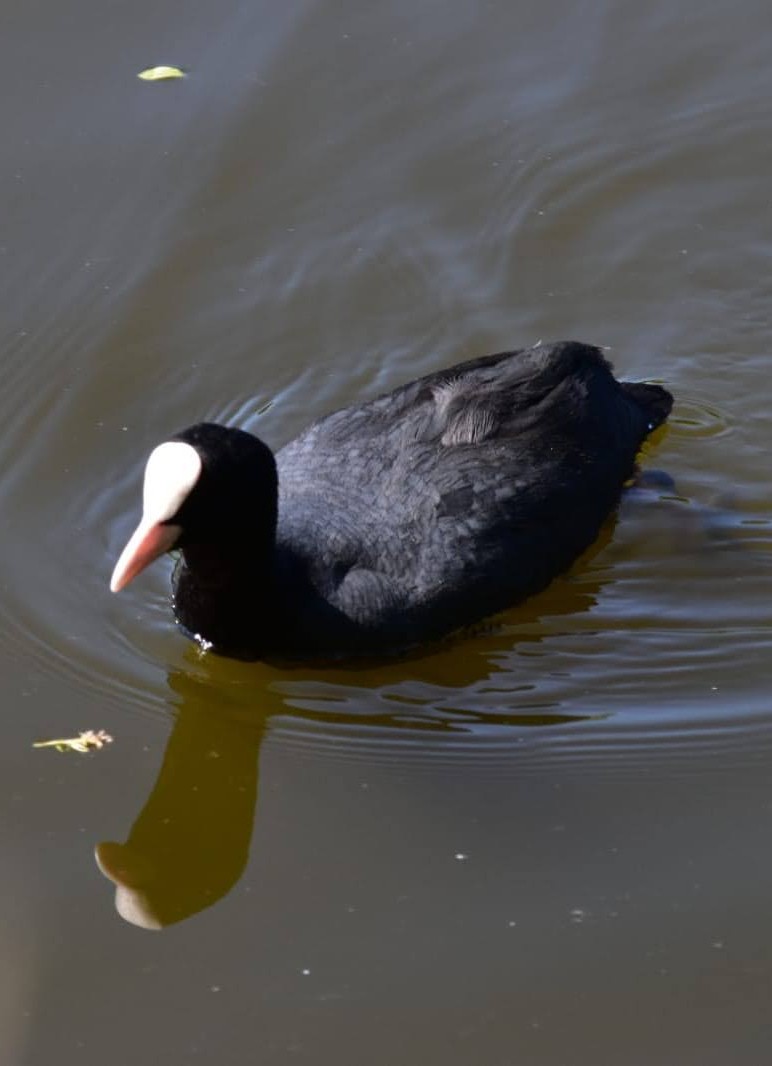 Das Blässhuhn (Fulica atra) gehört zu den auffälligen Wasservögeln im Märkischen Viertel. Sein tiefschwarzes Gefieder bildet einen starken Kontrast zur leuchtend weißen Stirnplatte und dem hellen Schnabel. Diese „Blässe“ ist das unverwechselbare Merkmal der Art.